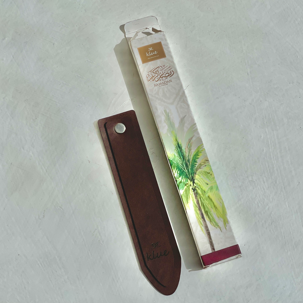 فاصل كتاب فاخر مصنوع من الجلد، يضفي لمسة أنيقة وعملية على كتبك. مثالي للاستخدام اليومي، كما يمثل هدية رمضانية أو شخصية راقية لعشاق القراءة.